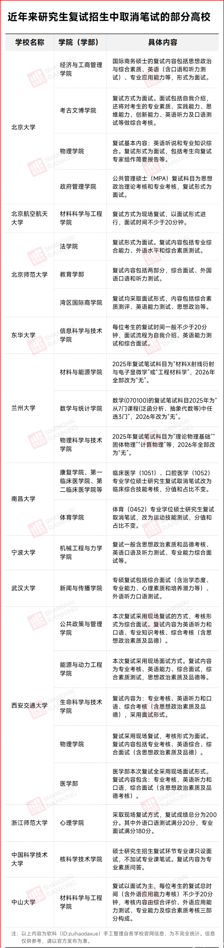 这3个未打消笔试的专业,理学院、材料科学取工程学院、消息科学取工程学院、医学取生物消息工程学院等12个学院/讲授部(全校共19个招生单元)的全数专业均颁布发表打消笔试。